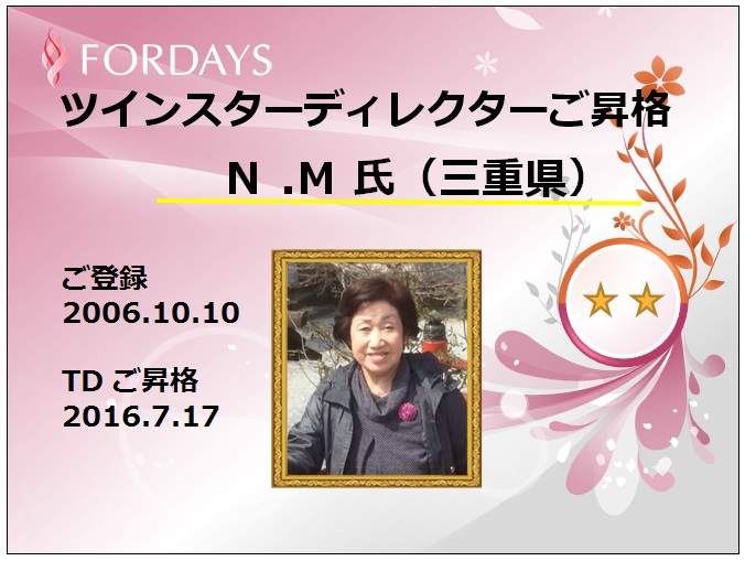 今回の主役は2016年7月度にツインスターディレクターにご昇格されました